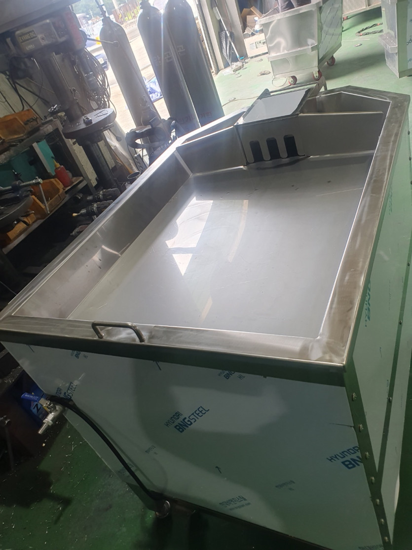 호퍼로 분쇄된 양념이 빠져나오는 식의 원리입니다. 물론 빠져나오는 양념을 받아주는 대차 또한 높이에 맞게 제작이 가능합니다