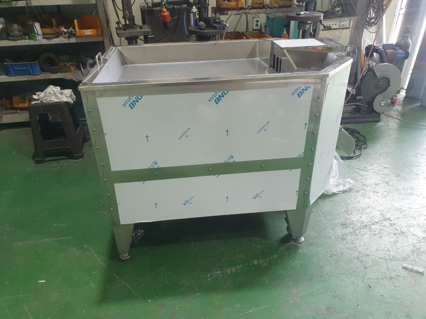호퍼로 분쇄된 양념이 빠져나오는 식의 원리입니다. 물론 빠져나오는 양념을 받아주는 대차 또한 높이에 맞게 제작이 가능합니다